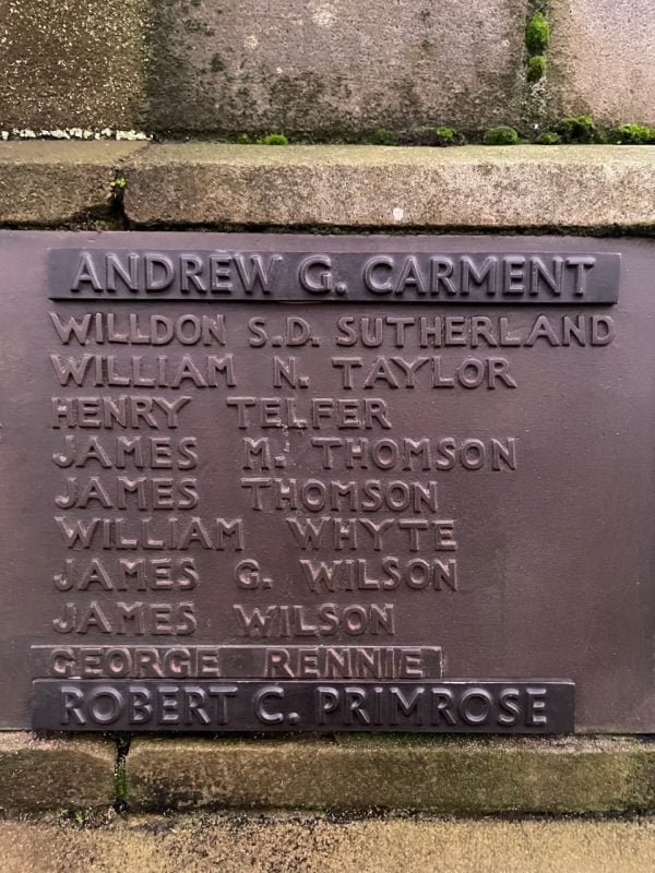 Surgeon Andrew Gray Carment, Merchant Navy, who died on 8th May 1941, age 66. He was serving on the S.S. Clan Buchanan, which was torpedoed by the German surface raider Pinguin. Andrew was rescued by the Pinguin but was killed when the Pinguin in turn was sunk by the British cruiser HMS Cornwall. Andrew also served in WW1 as a Captain in the RAMC. Between the wars he was a G.P. in St Andrews. He was a Former Pupil who left Dollar Academy in c 1886.