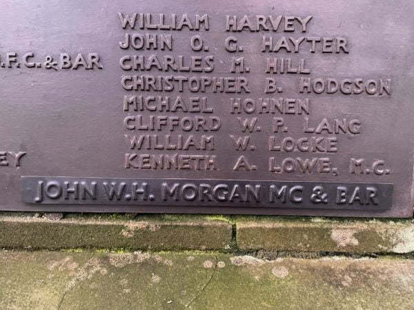Major John William Herbert Morgan, Military Cross and Bar. Highland Light Infantry (City of Glasgow Regiment), attached Inniskilling Fusiliers, who died on 17th October 1940, age 44. He was a Former Pupil (1906-1911). He was known as Herbert at school and fought in both WW1 and WW2. He was awarded the MC ‘For great gallantry and ability on October 12th 1918, in the operations near le Cateau. When the first attack on the railway failed, he displayed great energy in reorganising the men, and successfully attacked the machine-gun nest on the railway from the left, enabling the battalion to gain its first objective…. During the whole action he showed marked courage.’