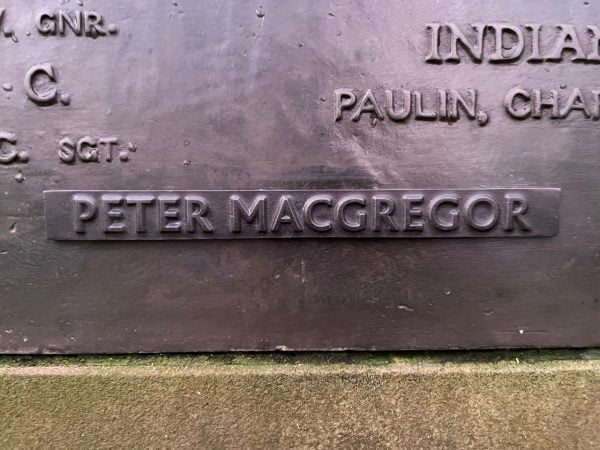 Gunner Peter MacGregor, “C” Bty, 52nd Bde, Royal Field Artillery, who died on 25th November 1918, age 26, from complications of Spanish Flu. He was a Former Pupil (1902-1906). He and his two brothers were orphans and while at Dollar they boarded, first in Islay Cottage with Miss Marshall and then with the Rector, Mr Dougall.